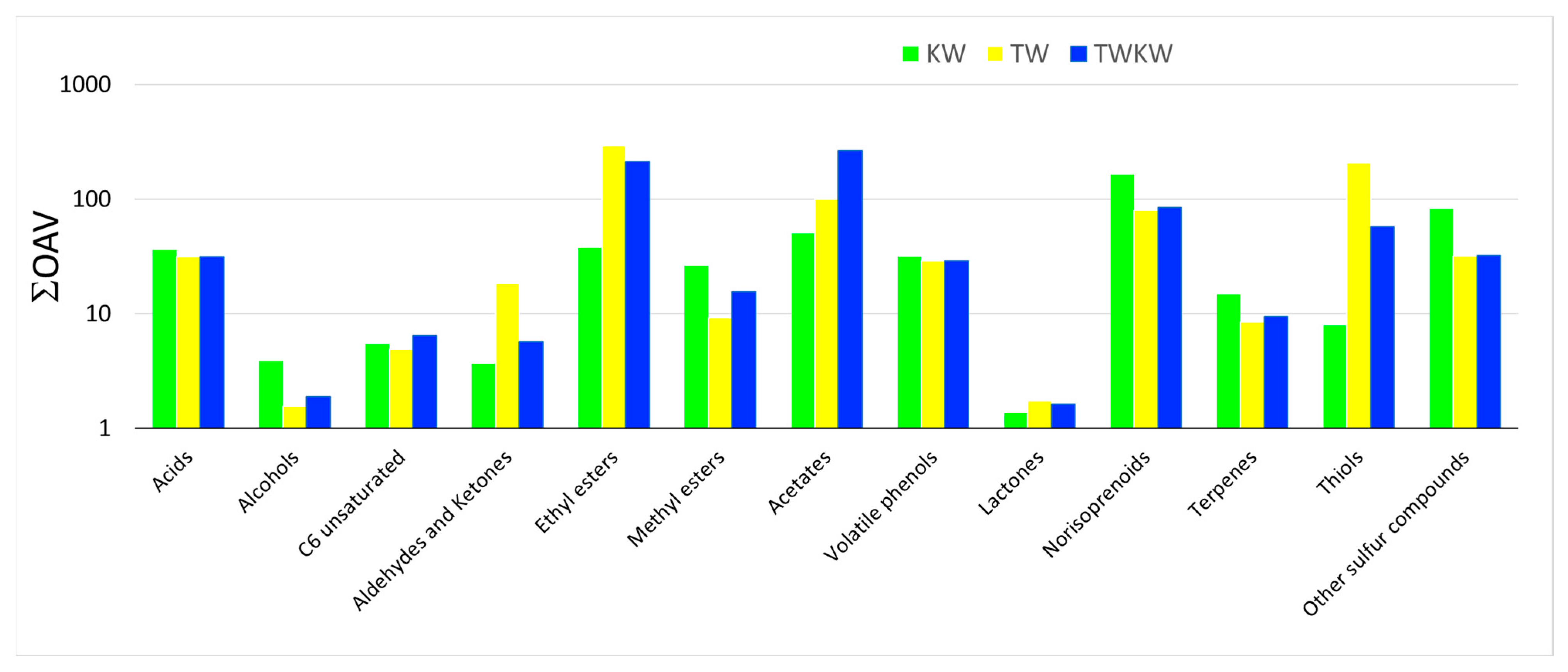 | Compound | KW | TW | TWKW | Odour Descriptor [44,47,48,50,52,54,57] |
